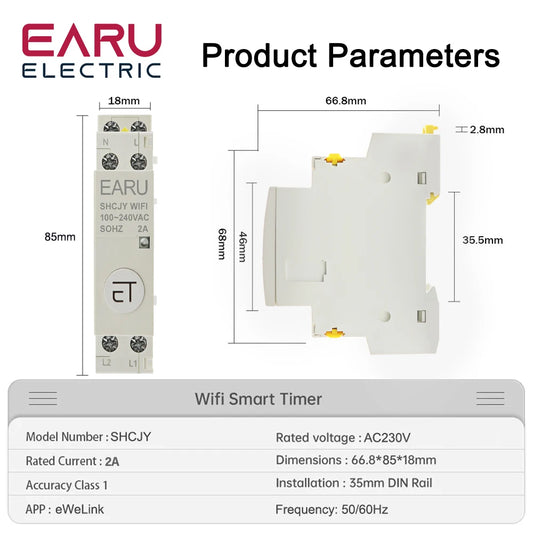 100-240V 2A AC Din Rail WiFi Auxiliary Contactor Controller Timer Work with Modular Contactor eWeLink APP Alexa Google Assistant