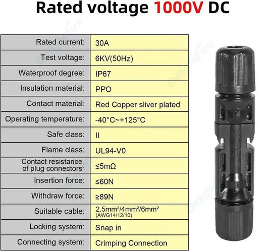 1 Pair Photovoltaic Connectors DC 1000V 30A Waterproof Terminals
