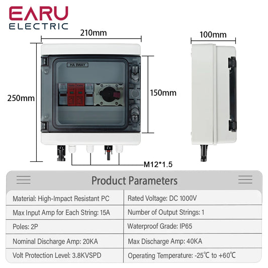 DC 1000V 1 Input 1 Output Solar Photovoltaic PV Combiner Box With Surge Lightning Protection DC Fuse MCB SPD Waterproof Box IP65