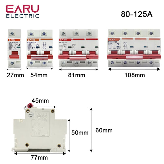 DC 1000V 1P 2P 3P 4P Solar Mini Circuit Breaker Overload Protection Switch 6A~63A/80A 100A 125A MCB for Photovoltaic PV System