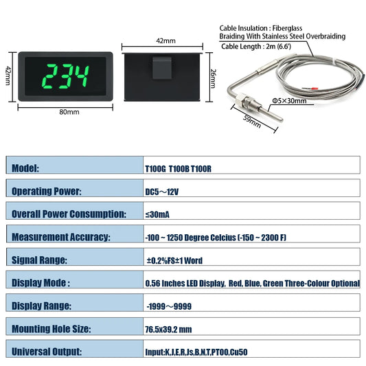 LED Digital Thermometer With EGT Temperature Sensor Weld Bund Combo Kit In Fahrenheit Celsius Adjustable Universal Use PT100 K