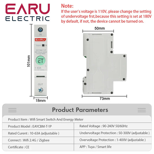 1P TUYA APP Zigbee WIFI Smart Energy Power Consumption kWh Meter Circuit Breaker Time Relay Switch Leakage Voltage Protection