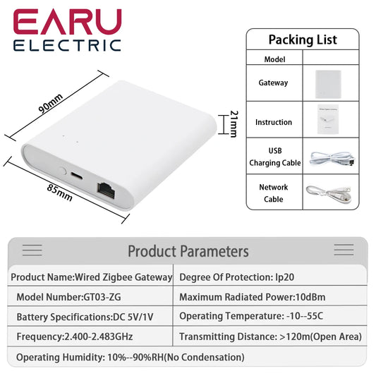 Tuya APP Wired Zigbee Bridge Smart Home Zigbee Gateway Hub Remote to Control Zigbee Devices Smart Life APP for Alexa Google Home