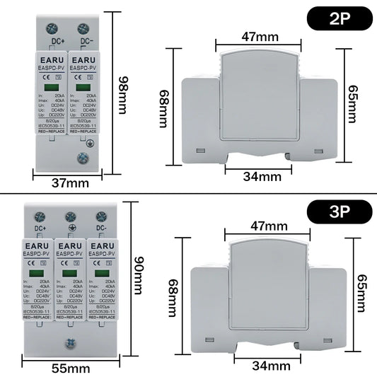 Power Surge Protective Device SPD Arrester Low Voltage House 2P 3P Surge Voltage Protection DC 12V 24V 48V 500V 800V 1000V 40KA
