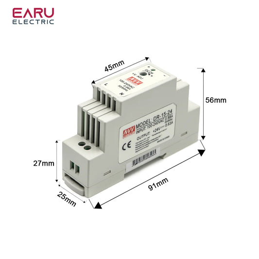 DR-15 15W Input 100-240V AC Output DC 12V 24V 1.25A 0.63A Industrial DIN Rail Switching Power Supply DC power supply 15WDR/MDR