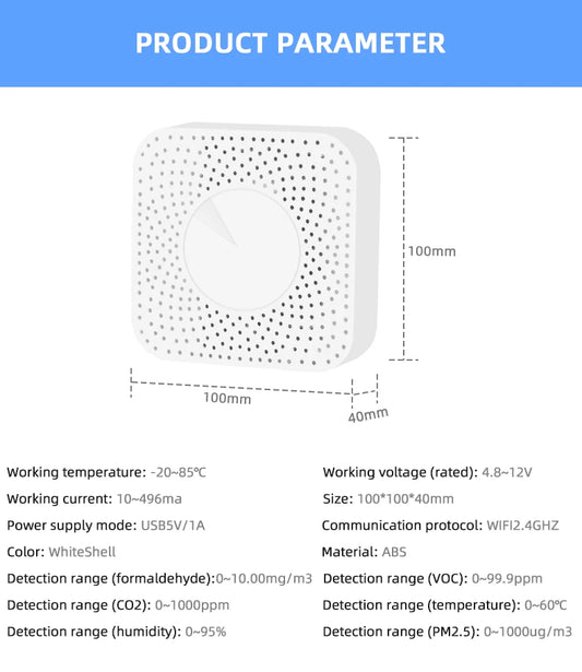 Wifi Smart Air Box Sensor PM2.5 PM10 Temperature Humidity Gas Detector Meter Tuya Smart Life App Control Home Automation Alarm