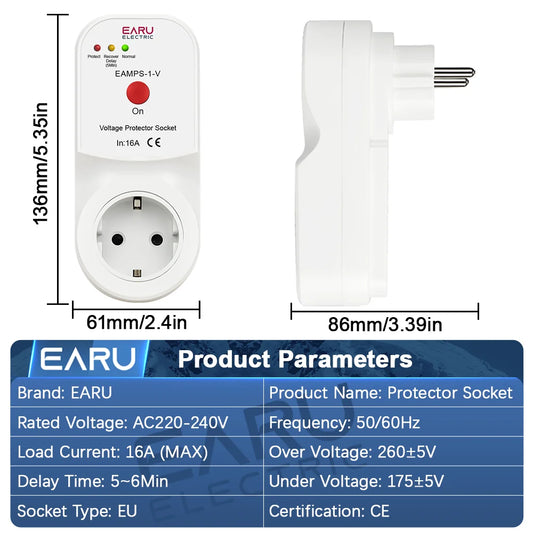 Automatic Voltage Protector Socket Switch 16A AC 230V 50/60Hz Power Surge Protection EU Socket Type Volt Safe For Home Appliance