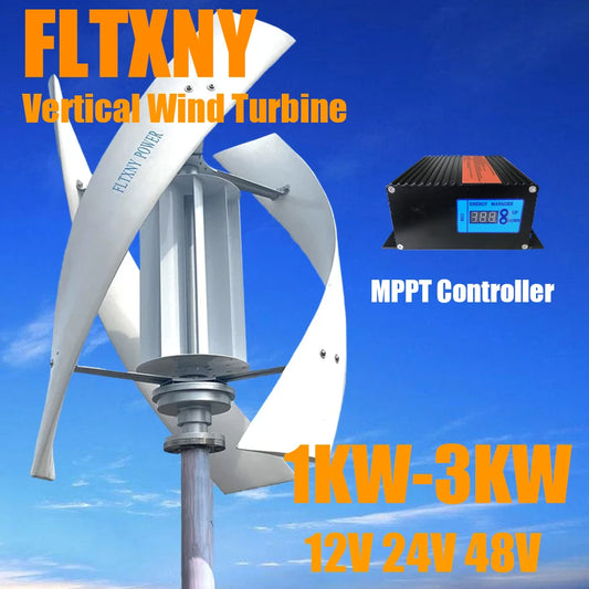 FLTXNY Wind Turbine 3000W 12V 24V 48V Vertical Wind Generator With Controller 3 Phase With 3 blades For Home Use CE