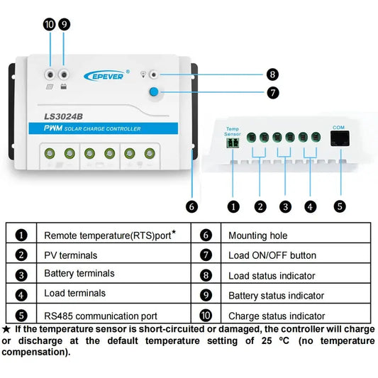 EPEVER 30A PWM controlador de carga Solar 12V 24V Auto LS3024B con interfaz RS485 accesorio regulador de Panel Solar opcional
