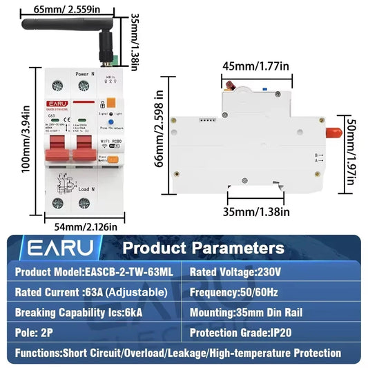 Tuya Smart WiFi Circuit Breaker Switch PV Bi-Directional Energy Meter Timer Measuring Earth Leakage Over Under Voltage Protector