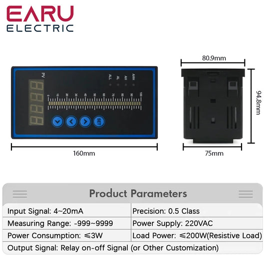 4-20mA Waterproof Integral Level Transmitter Controller Input Liquid Oil Water Level Sensor Controller Float Switch Mount Box