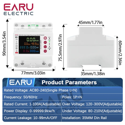Tuya WiFi Smart Bidirectional Energy Meter Power kWh Meter Earth Leakage Over Under Voltage Protector Timer Relay Switch Current