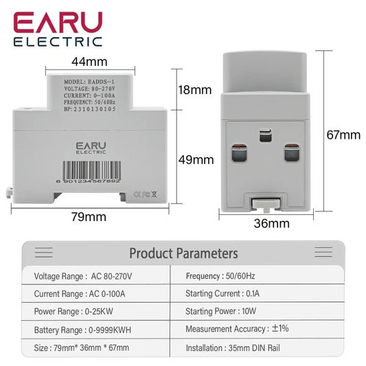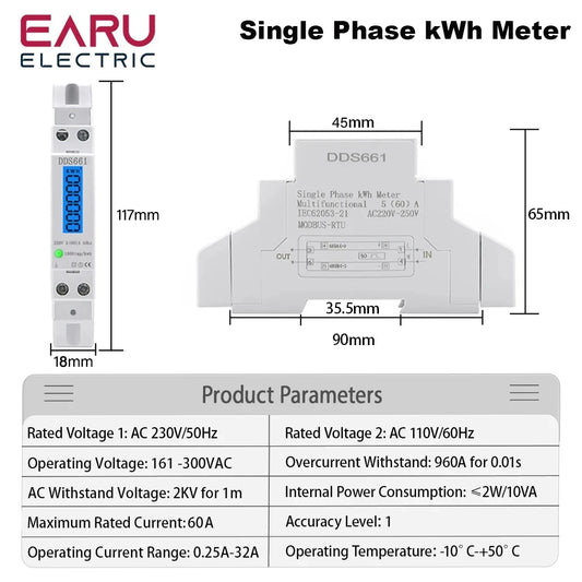 Single Phase Backlight Wattmeter Power LCD Digital Display Consumption Meter KWh 60A 110V 230VAC 50Hz Watt Din Rail Energy Meter