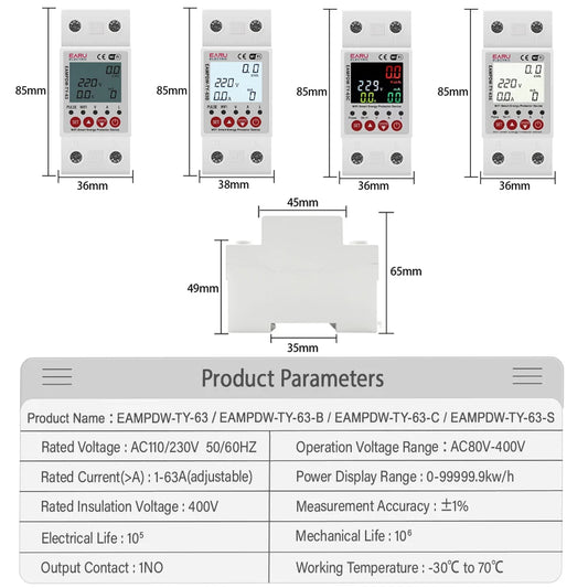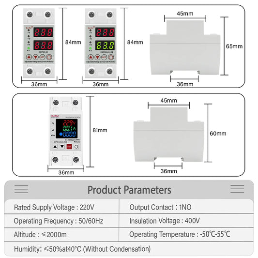 AC 40A 63A 230V Din Rail Adjustable Over Voltage Under Voltage Protective Device Protector Relay Over Current Protection Limit