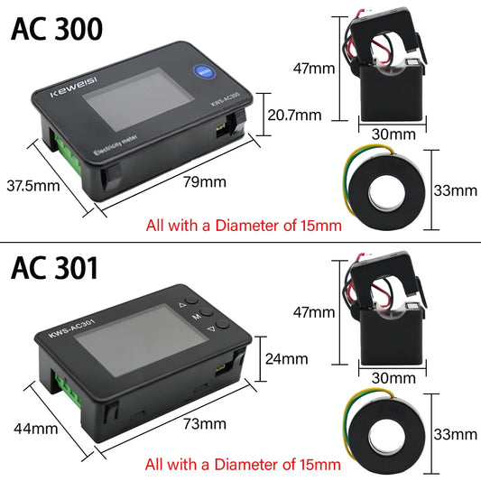 KWS-AC301 AC300 Voltmeter Ammeter AC 50-300V Power Energy Meter Digital AC Wattmeter Electricity Meter 0-20/100A Power Detecor