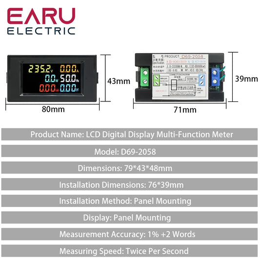 D69-2058 AC Power LCD Digital Voltage Current Power Voltmeter Ammeter KWH Panel Meter Electric Energy Consumption Monitors 100A