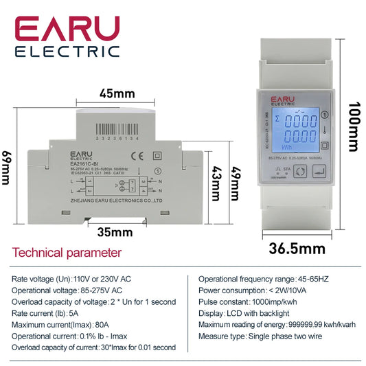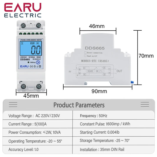 Single Phase LCD Digital Energy Meter Reset Zero kWh Voltage Current Power Consumption Counter Electric Wattmeter 220V Din Rail