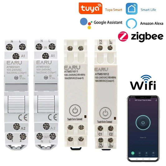 AC 110V 220V 16A Din Rail WIFI Zigbee Smart Timer Relay Switch Circuit Breaker Remote Control by Tuya APP KWH Energy Power Meter