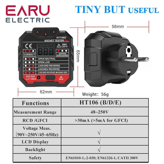 EU UK US HT106B HT106D HT106E Socket Tester Voltage Test Socket Detector EU UK Plug Ground Zero Line Plug Polarity Phase Check