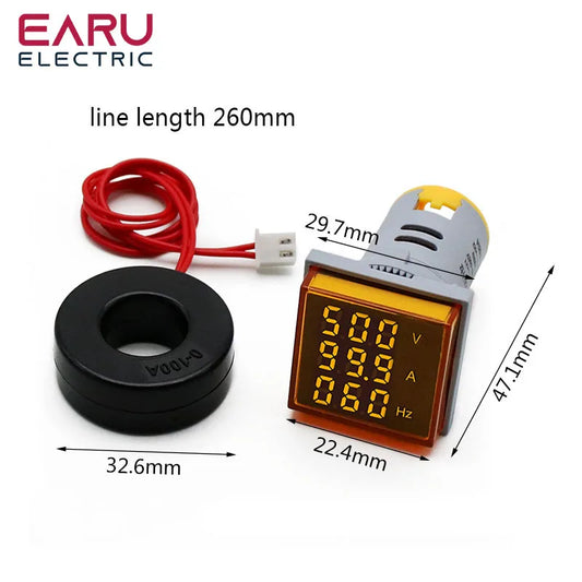 Square LED Digital Voltmeter Ammeter Hertz Meter AC20-500V Signal Lights Voltage Current Frequency Combo Meter Indicator Tester