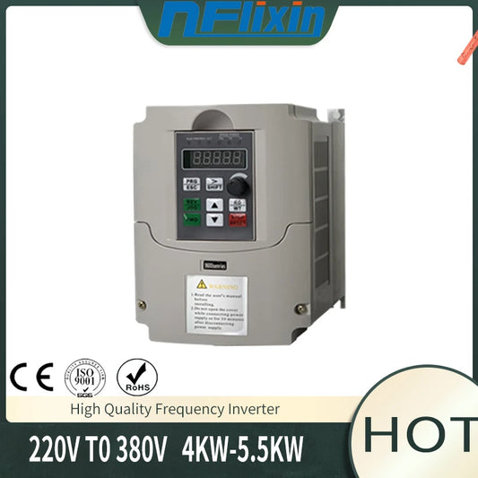 Frequency Inverter with VFD Technology, Converts 1-Phase 220V to 3-Phase 380V, Powers Motors 750W to 11KW