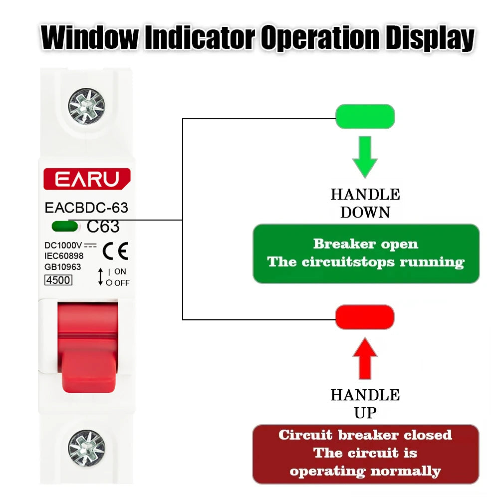 1P DC 1000V MCB Solar Mini Circuit Breaker Overload Protection Switch 6A 10A 16A 20A 25A 32A 40A 50A 63A DC1000V Photovoltaic PV