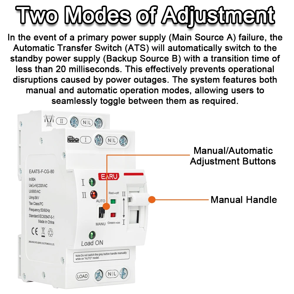 2.The switch cannotbe manually switched when in automatic mode, otherwise the coil may burn out.