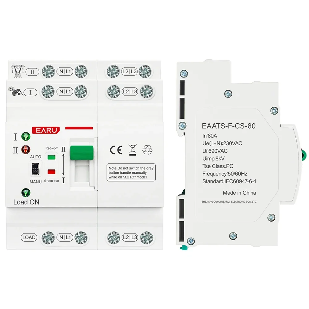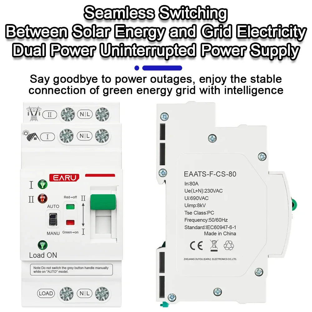 2P 4P 80A AC 230V 110V Mini ATS Solar PV Dual Power Automatic Transfer Switches Electrical Selector Switch Uninterrupted Power