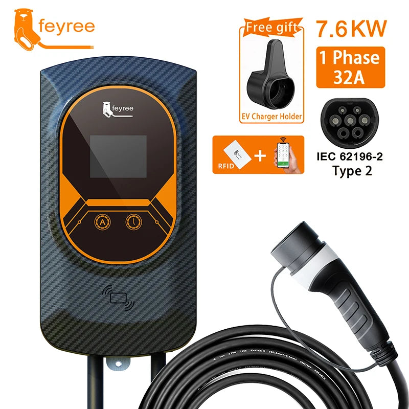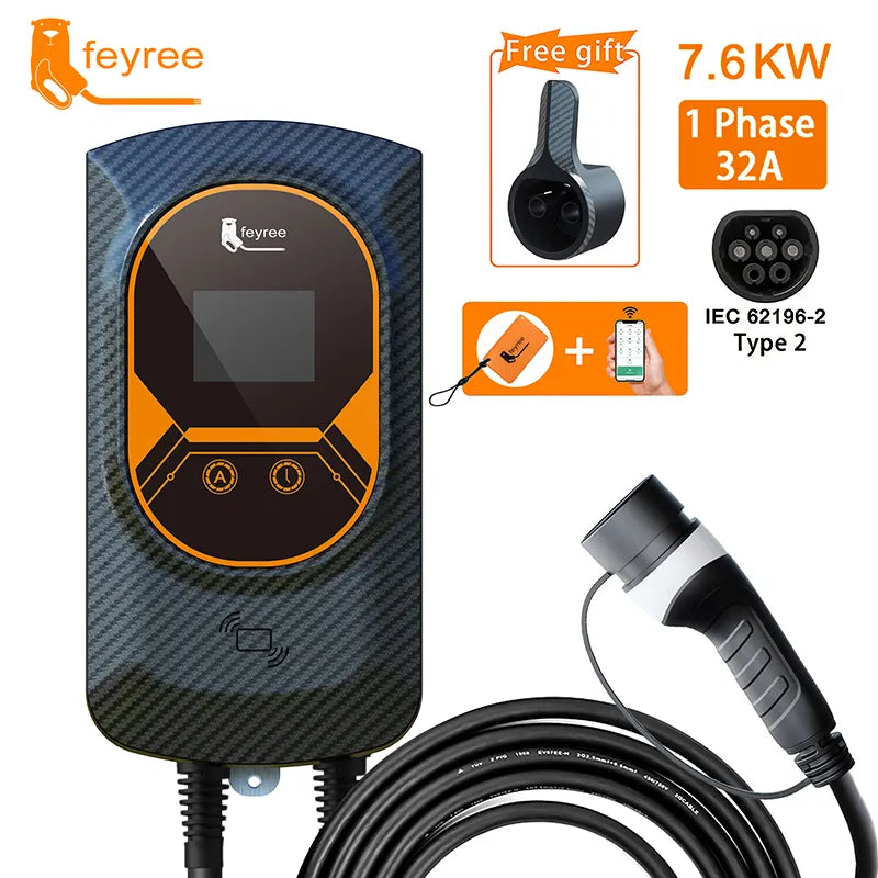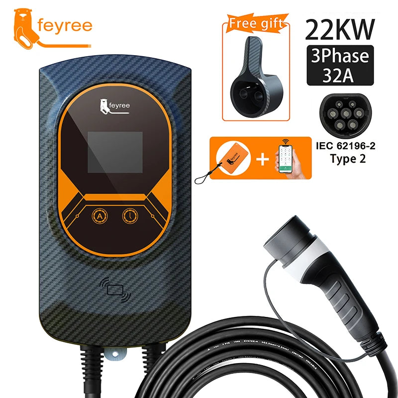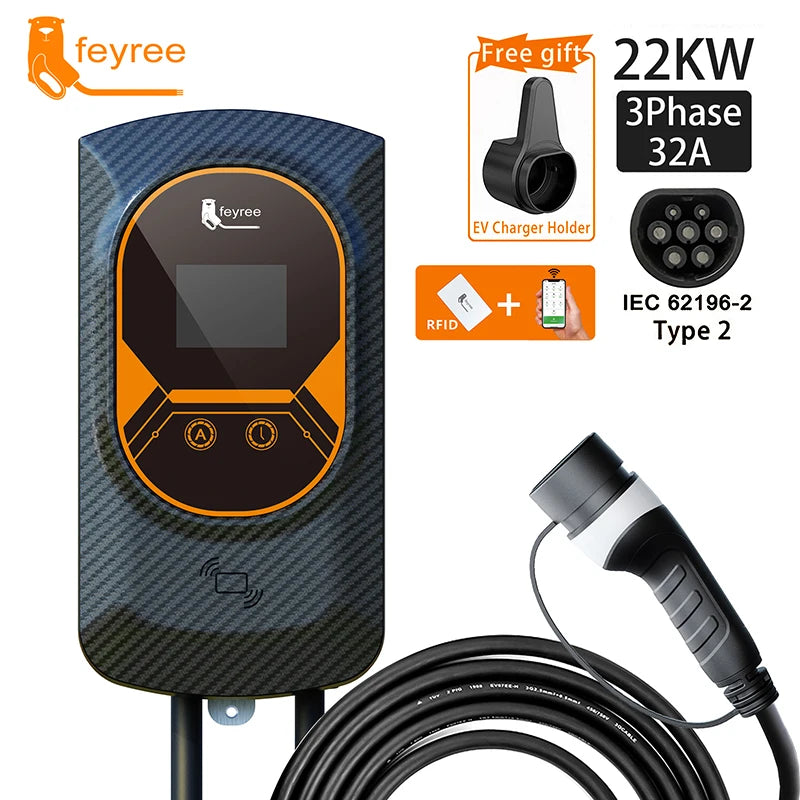 Cargador de pared EVSE de 32 A: cable tipo 2, potencia de 7,6/11/22 KW y control de aplicación para carga de vehículos eléctricos