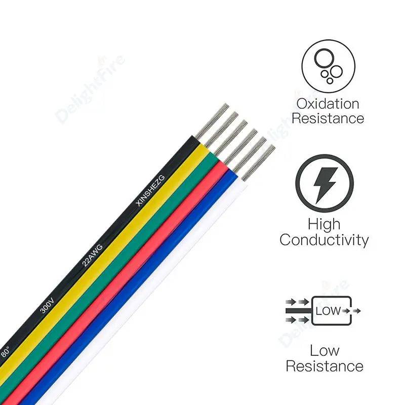 ⚡ 6Pin Extension Electronic Cable 22 20 18 AWG PVC Insulation for RGBWW RGB+CCT LED Strips