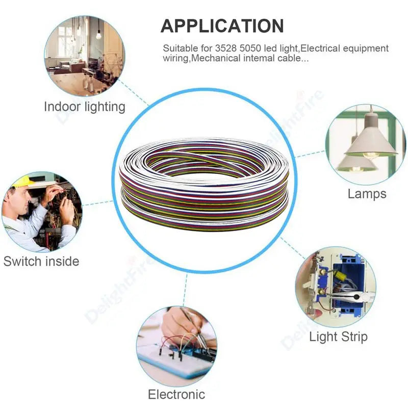 6Pin Extension Electronic Cable 22 20 18 AWG PVC Insulation for RGBWW RGB+CCT LED Strips