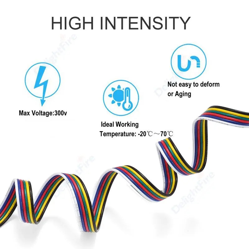 Upgrade your system with our high-performance 6Pin Extension Electronic Cable 22 20 18 AWG PVC Insulation for RGBWW RGB+CCT LED Strips. Built for reliability, efficiency and seamless integration with modern setups.