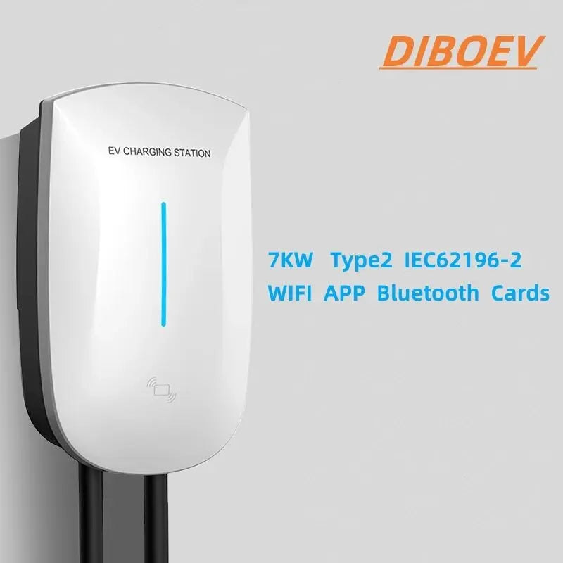 Cargador EV tipo 2, 22KW, corriente trifásica ajustable, EVSE Wallbox, aplicación WIFI, versión BT para estación de Carga de coche para vehículos eléctricos