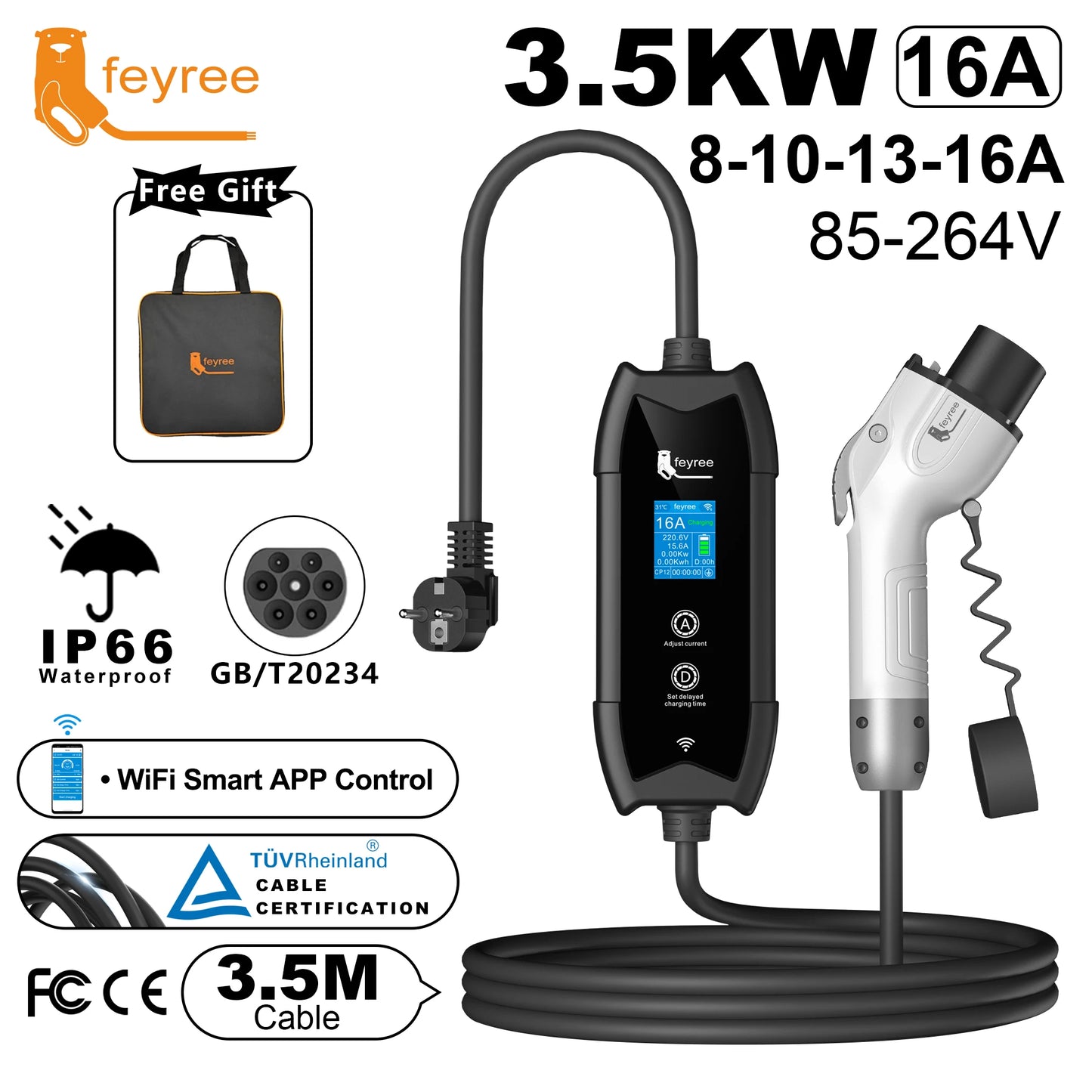 ⚡ feyree GB/T Portable EV Charger 3.5m Cable with WIFI APP Control 16A 3.5kW Set Charging&DelayTime for EV Cars,Plug customizable