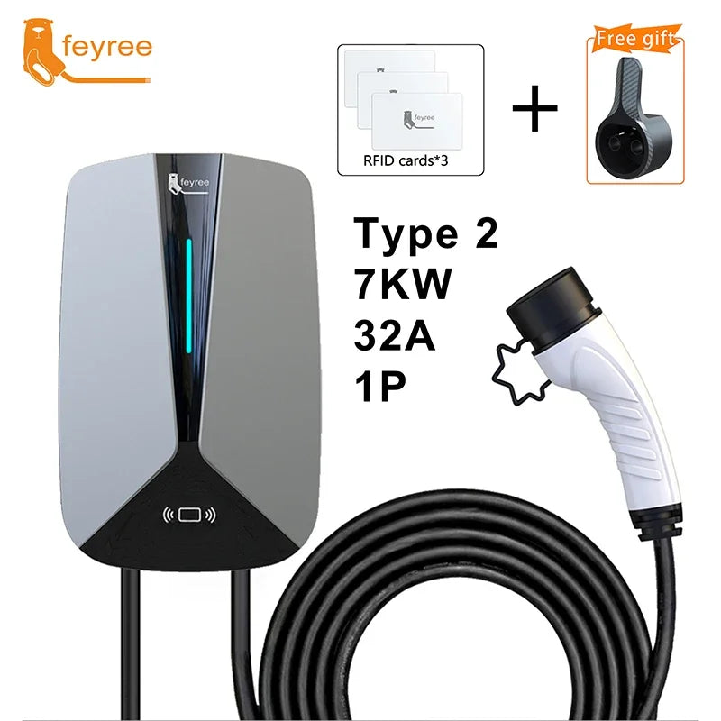 ⚡ feyree Type2 32A 7.6KW 1Phase EV Charger EVSE Wallbox RFID Cards Version 5m Cable Charging Station for Electric Vehicle Car