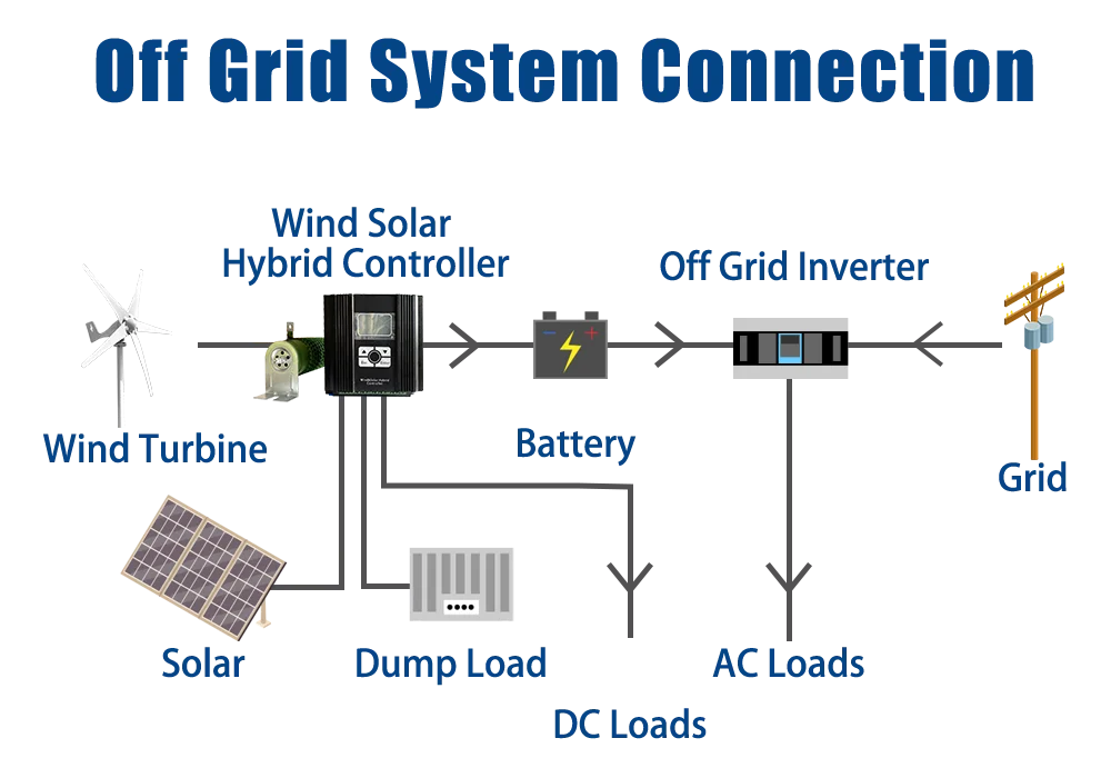 The off-grid system consists of a wind turbine,