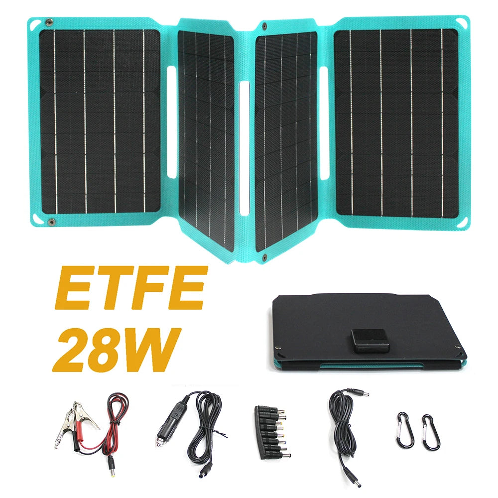 Cargador de Panel Solar portátil actualizado 28W 21W 14W doble USB 5V 18V DC Panel Solar plegable para acampar para carga de teléfono banco de energía