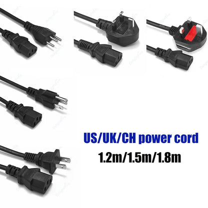 The US UK CH Plug Power Extend Cable IEC C13 Power Lead Cord is an essential accessory for your electronic devices, offering versatility and reliability. Available in multiple lengths of 1.2m, 1.5m, and 1.8m (5ft), this cord is designed for use with desktop PCs, computer monitors, LCD TVs, and 3D printers.