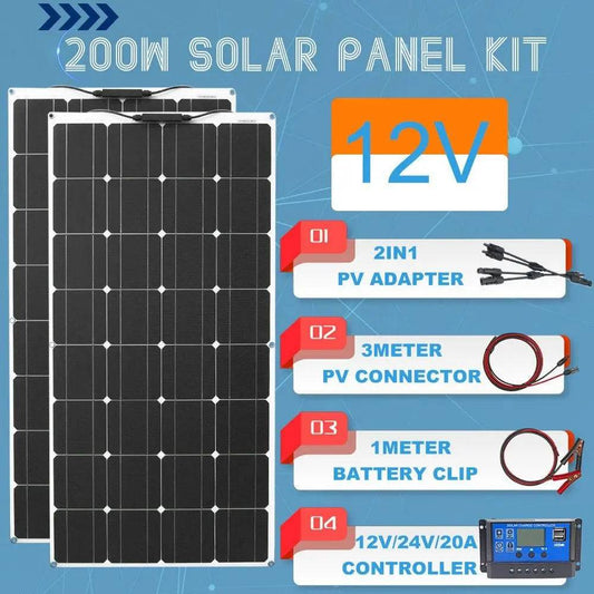 Panneau solaire 200W Flexible 20A, Module de câbles de contrôleur 12V 24V
