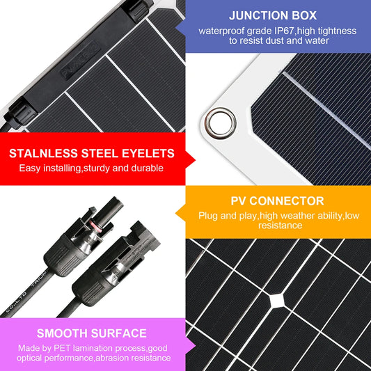 Panneau Solaire Mono Flexible 200W 100W 10A/20A 12/24V