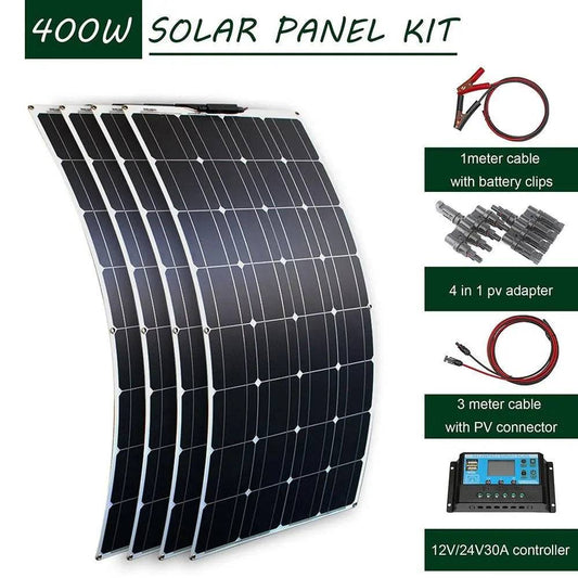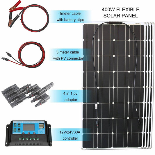 Kit Panneau Solaire Complet 400/300/200/100 Watts Flexible Solaire 12V
