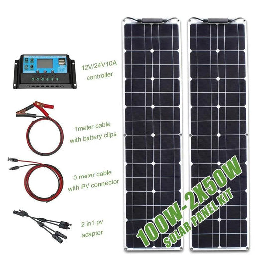 Panneau solaire flexible 12/24 V 100 W, chargeur de batterie monocristallin