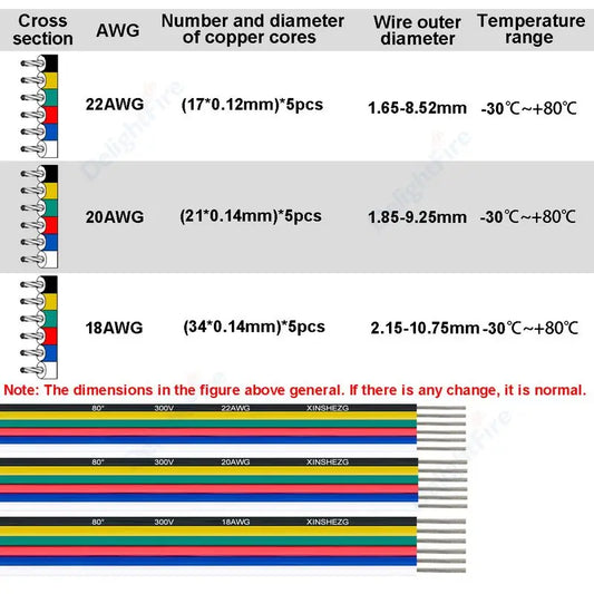 6Pin Extension Electronic Cable 22 20 18 AWG PVC Insulation for RGBWW RGB+CCT LED Strips