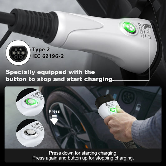 feyree EV Charger Type2 32A EVSE Wallbox with IEC62196-2 Adapter 7.6KW Wallmount Charging Station 5m Cable for Electric Vehicle