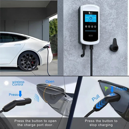 feyree EV Charging Station 32A 7KW TS-NACS Charger Plug for Tesla Car Charger EVSE Wallbox 9.6KW 12KW Fast Charging APP Control