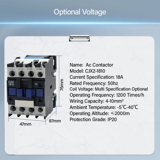 CJX2-1810 LC1 AC Contactor 18A 3 Phase 3-Pole NO Coil Voltage 380V 220V 110V 36V 24V 50/60Hz Din Rail Mounted 3P+1NO Normal Open