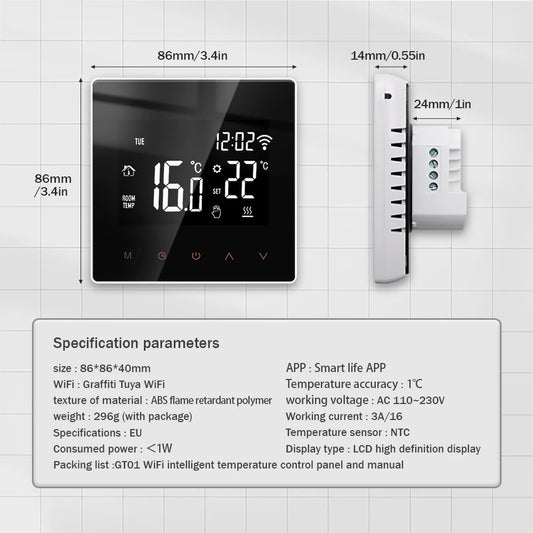TUYA WiFi Thermostat Temperature Controller Water Electric Floor Heating TRV AC90V-240V 3A 16A Digital LCD Display Wall Mounted
