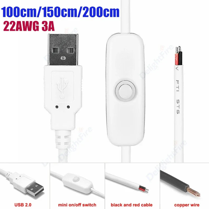 100/150/200cm USB Pigtail Cable with Switch ON OFF 12v 3A Power Extension Wire for LED Strip Light Lamp Bulb Fan USB Gadget DIY