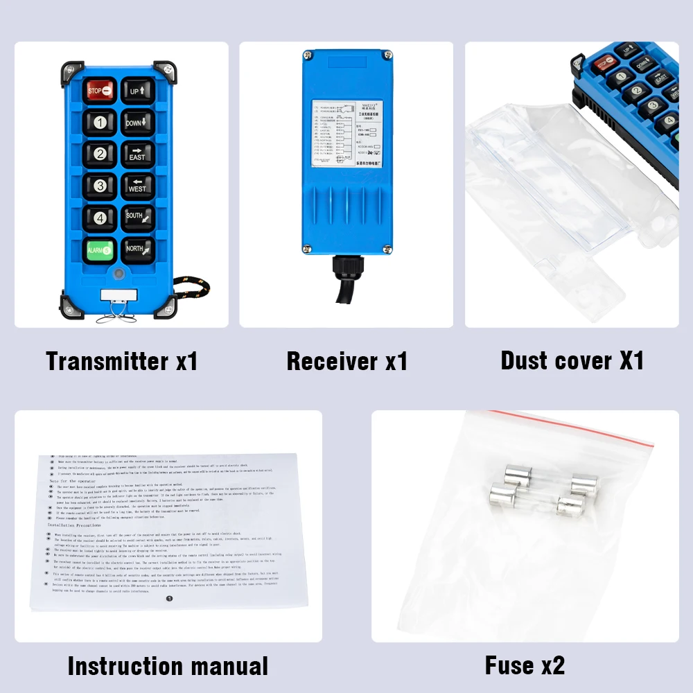 2 Transmitters + 1 Receiver F21-E2B-8 F21Industrial Remote Controller Switches 6 Channels Buttons Keys Direction for Hoist Crane