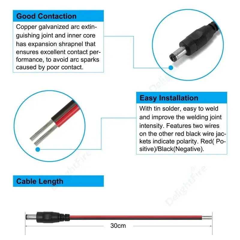 Each 20AWG 12V 5A DC Power Pigtail Cable is 100% brand new, ensuring durability and long life. The customizable cable length and DC jack plug make it easy to tailor to your specific needs. Contact us for customization options!